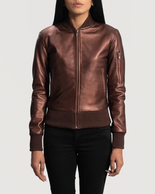 This maroon bomber looks rich and luxurious—the leather is soft, the fit is flattering, and it instantly elevates any outfit.