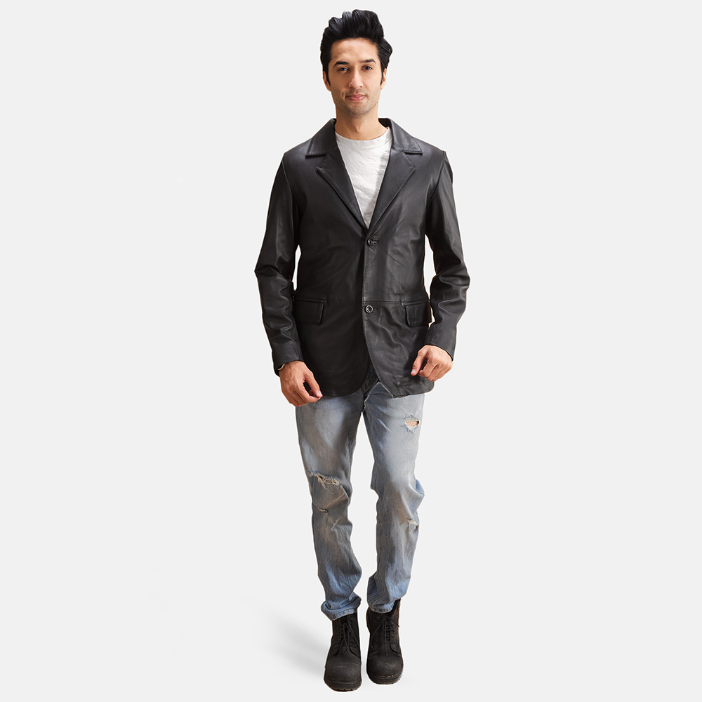 Avery Black Leather Blazer