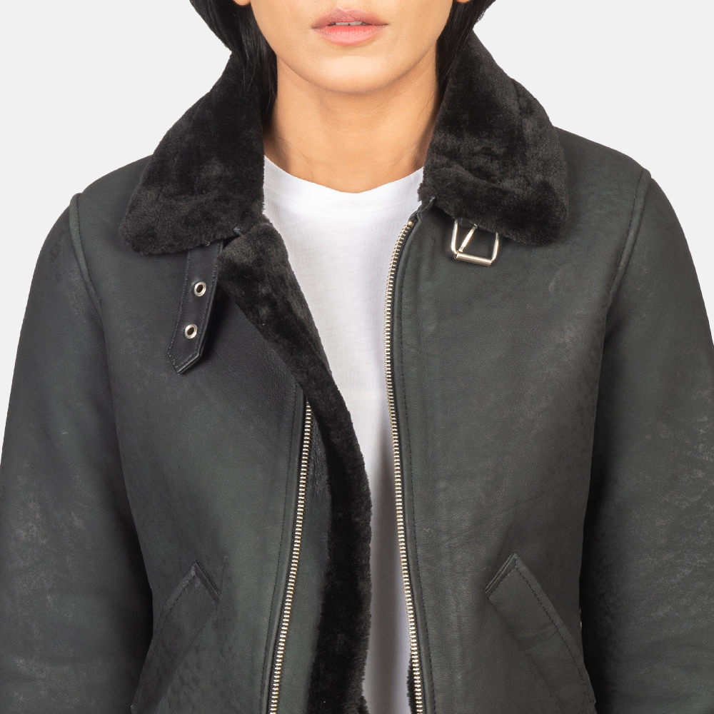 This distressed black bomber is incredible—the worn leather has so much character and the fit is effortlessly edgy yet chic.
