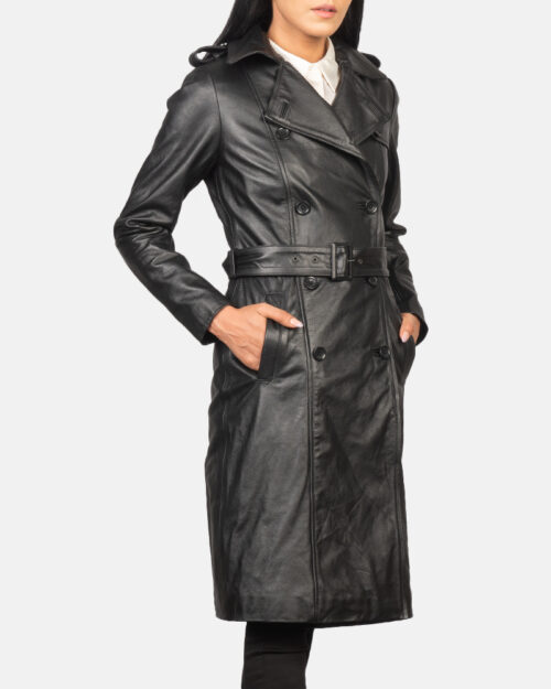 Carmen Black Double Breasted Leather Coat