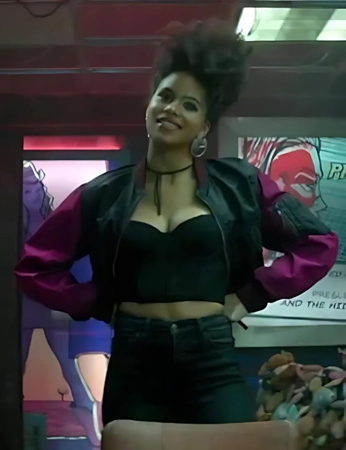 The black and purple satin leather combo is stunning. The rib-knitted collar and cuffs provide superb comfort