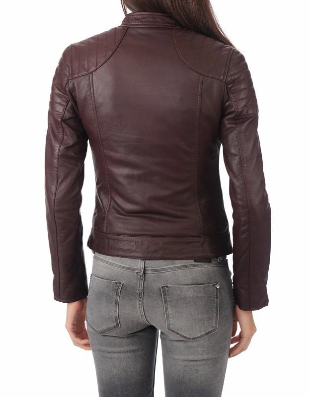 Vino Valor Maroon Leather Biker Jacket