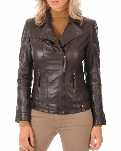 Earthly Brown Leather Biker Jacket