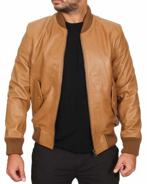 Eclipse Tan Leather Bomber Jacket