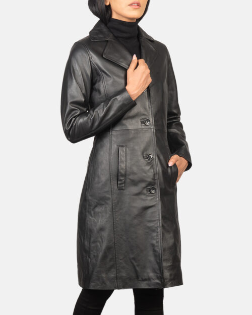 Elegance Luxe Black Single Breasted Leather Coat