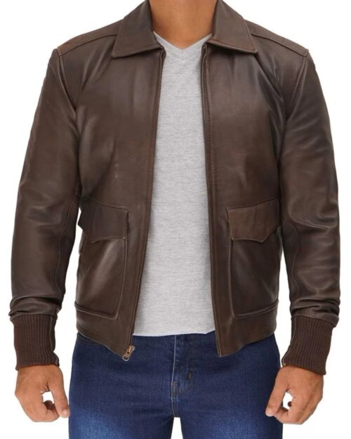 Aaron Brown Leather Bomber Jacket
