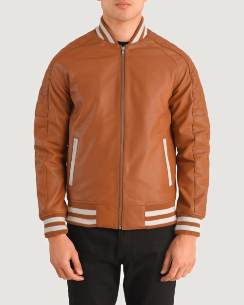 15 reviews for Grayson Tan Brown Leather Varsity Jacket