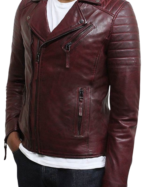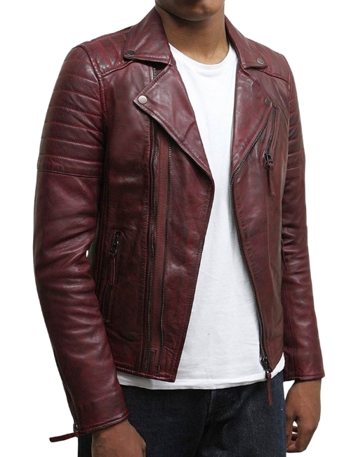 The Burgundy Biker Jacket for Men combines rich color, durable leather, and a modern, street-ready design