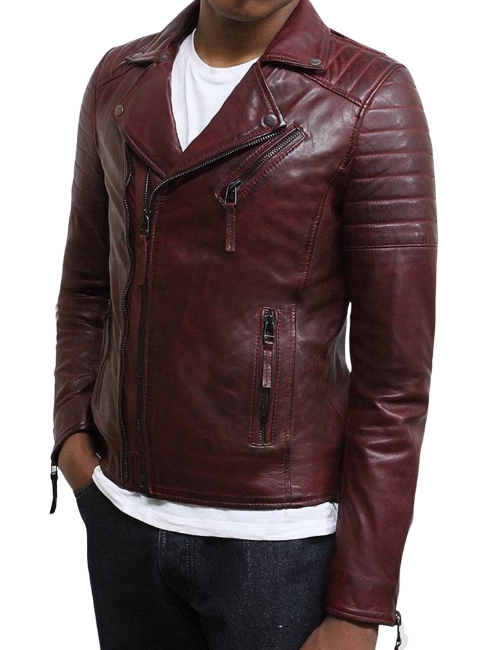 Mens Burgundy Biker Jacket