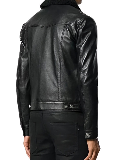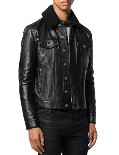 Men’s Fur Collar Trucker Leather Jacket