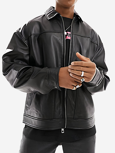 Men’s Oversized Black Leather Jacket