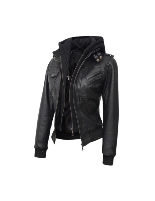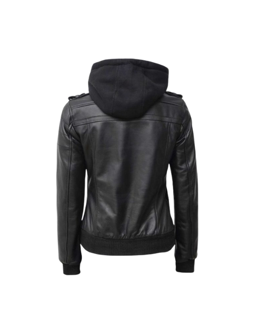 Olivia Black Real Leather Jacket With Hood