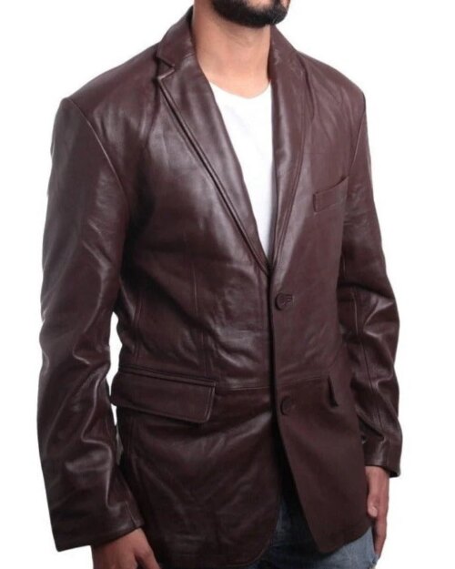Russet Brown Leather Blazer