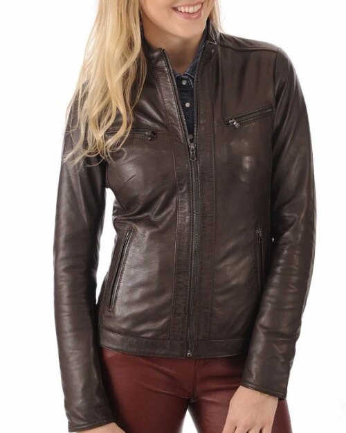 Verde Brown Leather Biker Jacket