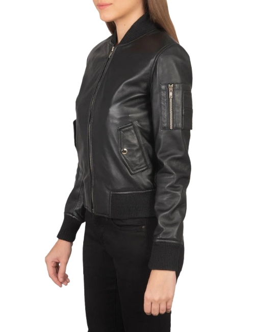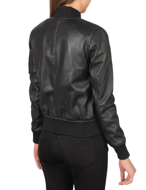 Women’s MA-1 Black Leather Bomber Jacket