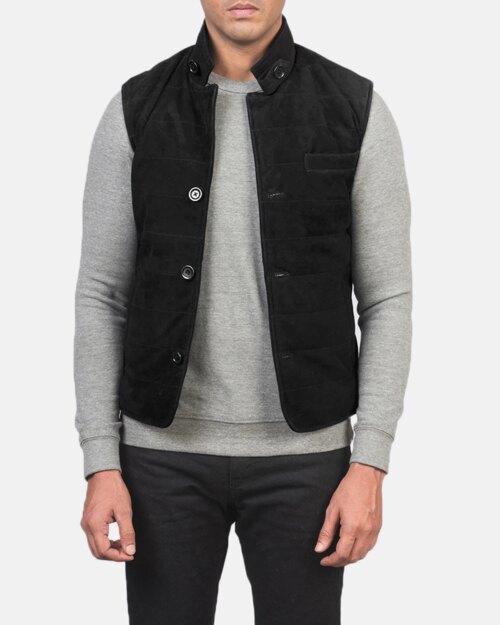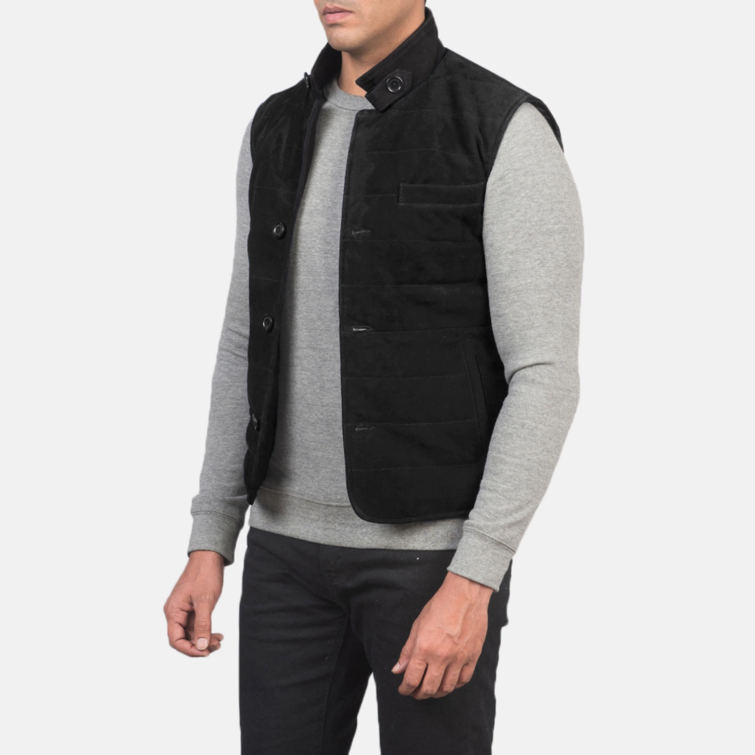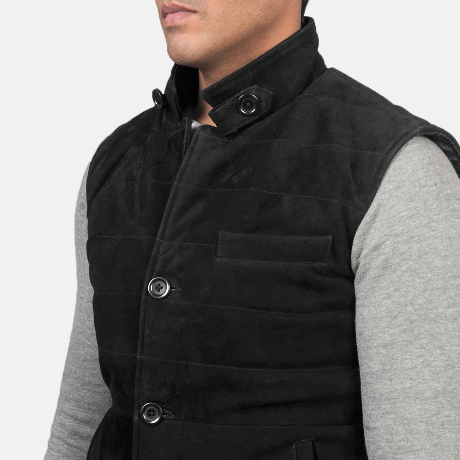 This vest stands out for its soft suede texture and sleek design, making it perfect for a polished look.
